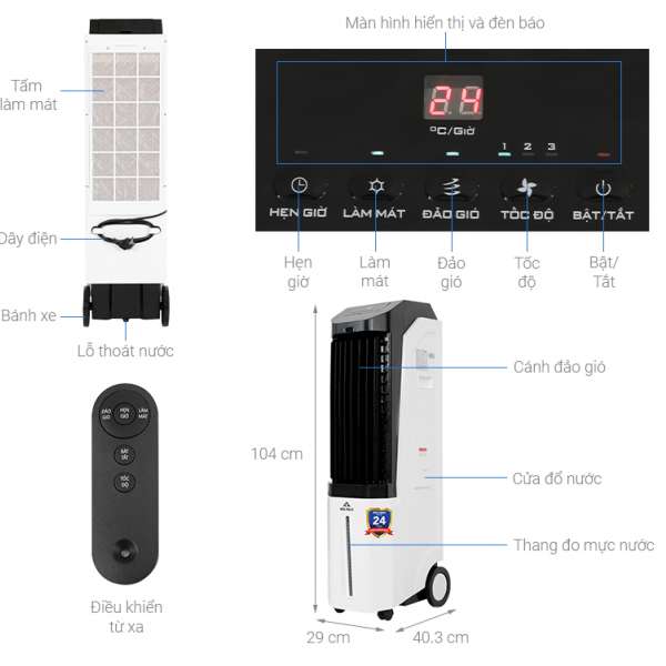 - Tính năng hiện đại: hẹn giờ tắt bật, đảo gió tự động, bơm tự động chống cạn,...