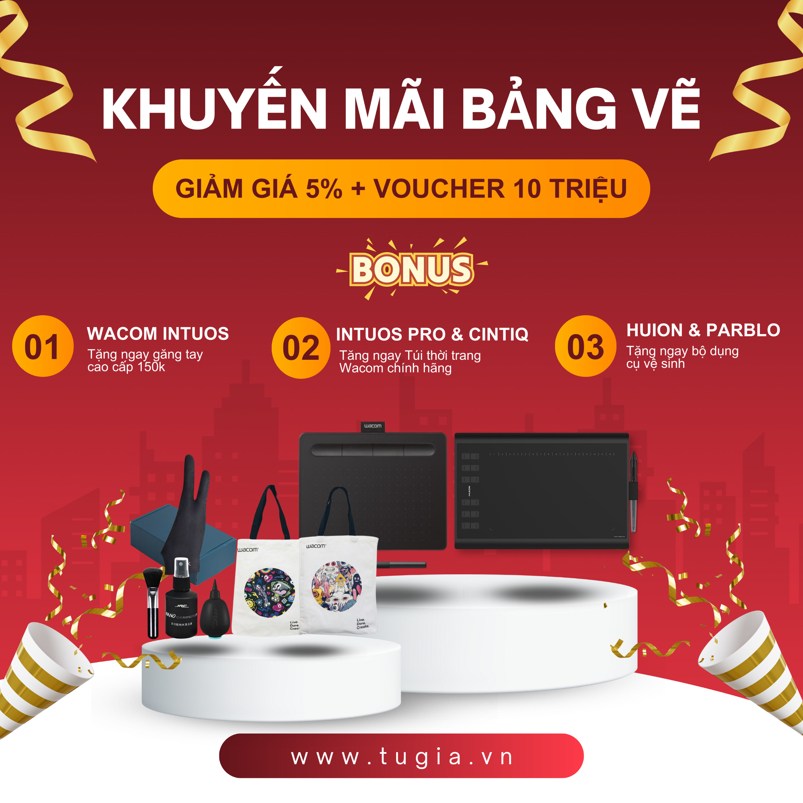 - Mua bảng vẽ wacom Intuos & Cintiq được tặng ngay Túi thời trang wacom chính hãng trị giá 300k.