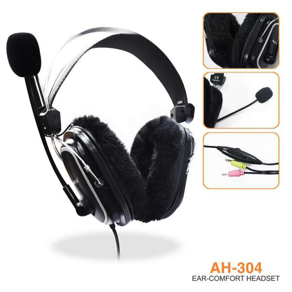 Tai nghe chụp đầu - có micro SOUNDMAX AH304 lót da + tặng kèm lót lông mềm mại là Tai nghe chụp đầu - có micro, dùng cho PC & Laptop. Màu đen, Lớp đệm được bọc lông mềm ấm áp, ôm kín tai, giảm thiểu tiếng ồn - lớp đệm bọc lông mềm có thể tháo ra được - tặng kèm 2 miếng lót tai bằng da để thay đổi. Độ nhạy 97dB/10mW/3mm, loa phone 1,5" - 32Ω x 2, chế độ tắt/mở Micro. Chân cắm 3.5mm
