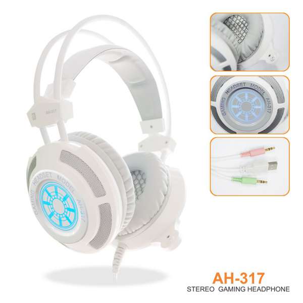 Tai nghe SoundMax AH-317 sở hữu ngoại hình đẹp, có tính năng rung lắc theo nhịp điệu và trang bị đèn LED màu xanh ở mặt ngoài củ tai nhằm tăng thêm tính thu hút các game thủ trẻ.