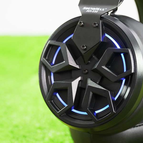 Chi tiết khiến SoundMax AH-330 trông hiện đại, khỏe khoắn hơn chính là phần củ tai lớn, đệm mút bọc da nhân tạo dày và phần mặt ngoài củ tai được ốp một bộ “giáp” với những đường nét góc cạnh. Mẫu tai nghe này cũng được trang bị cụm đèn LED màu xanh dương bên trong mỗi củ tai. Mỗi khi được cấp nguồn từ cáp USB trên headphones, “bộ giáp” khoác ngoài mỗi củ tai càng trông lạnh lùng và chuyên nghiệp hơn hẳn. Tuy là một sản phẩm giá rẻ, nhưng SoundMax AH-330 cho thấy sản phẩm ngày càng nhận được sự chăm chút từ phía nhà sản xuất.
