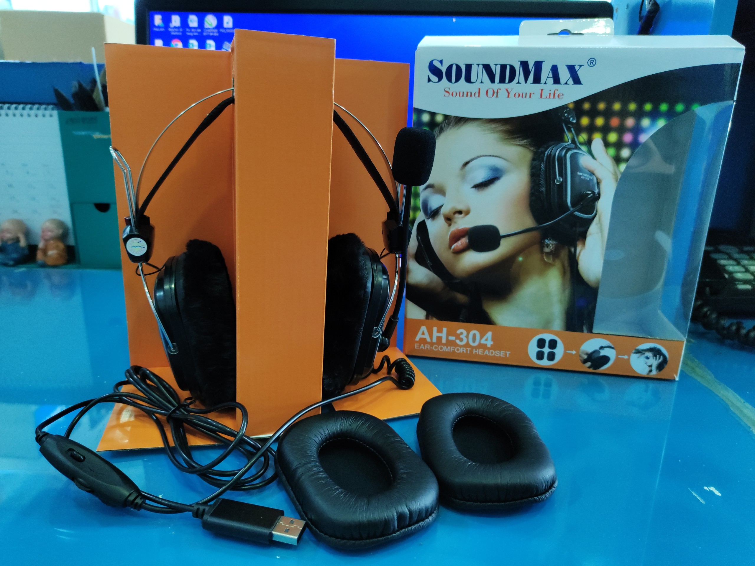 Tai nghe tổng đài, tai nghe PC cổng USB Soundmax AH-304 giá hạt rẻ, tặng kèm lót da + lót lông mềm mại