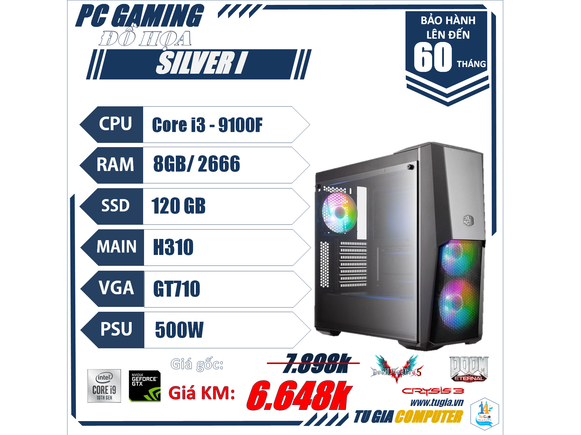 Cấu Hình  Đồ Họa - Gaming 01: PC GAMING SILVER I (i3-9100F/ GT710/ 8Gb/ SSD 120Gb) GM01