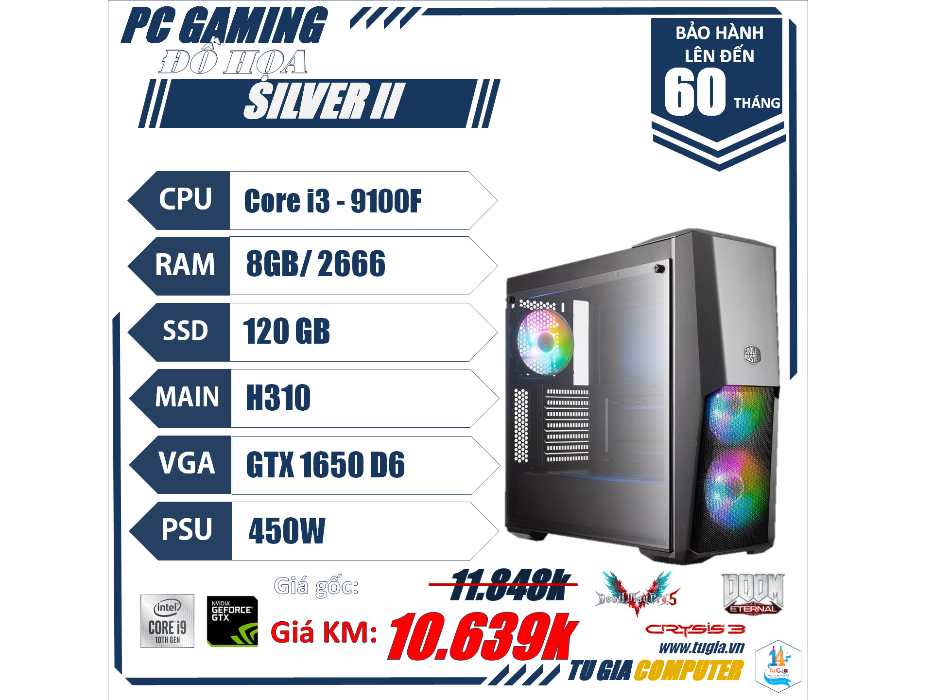 Cấu Hình PC4G Đồ Họa - Gaming 02: PC GAMING SILVER II (i3-9100F/ 1650 D6/ 8Gb/ SSD 120Gb) GM02​