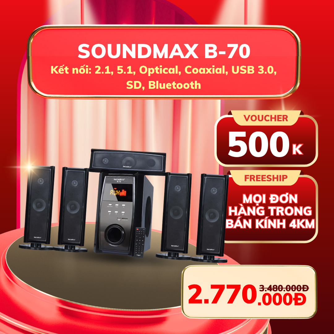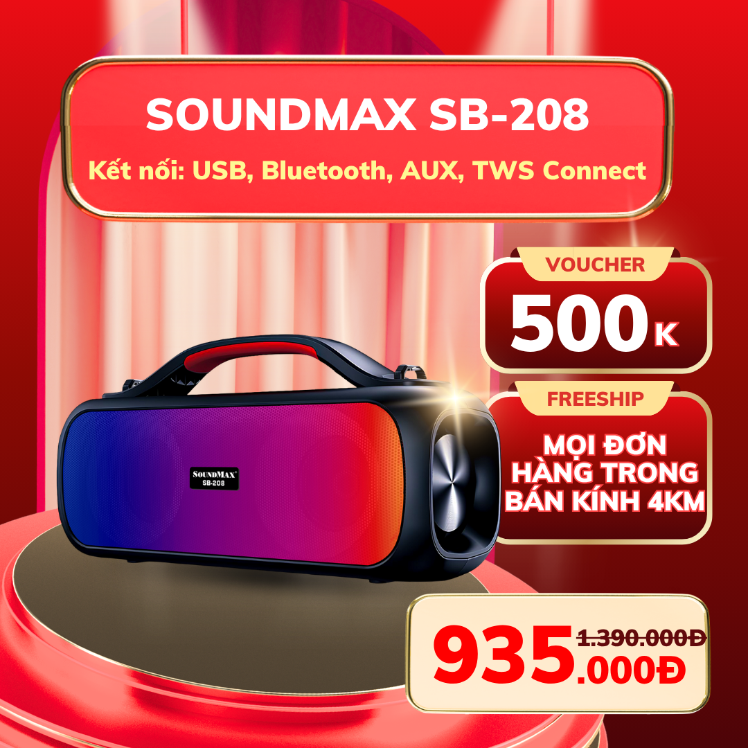 Nhân dịp này, Tứ Gia triển khai chương trình ưu đãi lớn dành cho toàn bộ sản phẩm loa SoundMax chính hãng. Mức giá được tối ưu hấp dẫn, giúp khách hàng dễ dàng lựa chọn thiết bị âm thanh phù hợp cho nhu cầu giải trí trong suốt kỳ nghỉ lễ.