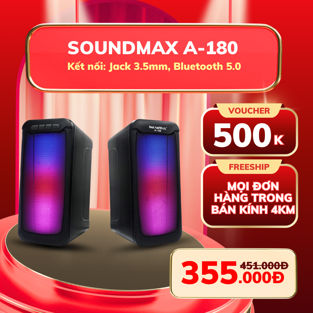 9. Loa SoundMax A-180 – Âm thanh mạnh mẽ cho không gian giải trí