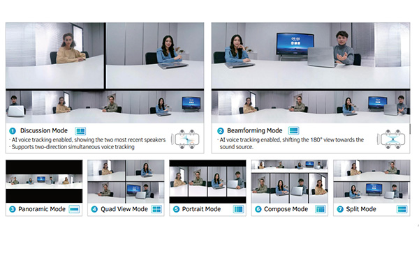 *Kinh ngạc trước camera hội nghị 360° tích hợp tất cả trong một khả năng nhận diện khuôn mặt hoặc bắt từng đoạn hội thoại trong không gian có quy mô vừa và nhỏ