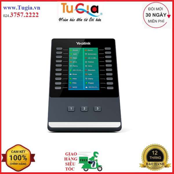 Các tính năng và lợi ích chính Màn hình LCD 4,3 "480x272-Pixel với đèn nền Biểu tượng màu sắc cho trải nghiệm hình ảnh phong phú 20 phím vật lý trên mỗi trang với đèn LED màu kép 3 Phím Điều khiển Độc lập Chiếu sáng bằng Đèn LED Hỗ trợ lên đến 3 mô-đun Daisy-Chain Chân đế với 2 góc điều chỉnh Yealink là một trong những nhà cung cấp các sản phẩm và dịch vụ IP hàng đầu thế giới. Công ty dành riêng cho các cải tiến về điện thoại liên lạc và phạm vi điện thoại IP của họ đang đi đầu trong công nghệ. Các sản phẩm của Yealink hợp nhất thoại, video và dữ liệu, đồng thời được thiết kế cho các doanh nghiệp thuộc mọi quy mô. Các giải pháp của Yealink phù hợp với mọi đối tượng người dùng, từ giám đốc điều hành đến nhân viên lễ tân và có thể hỗ trợ nhân viên giao tiếp từ văn phòng, phòng hội nghị hoặc khi đang di chuyển.